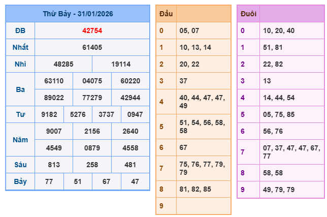 Bảng kết quả xsmb ngày 31/01/2026