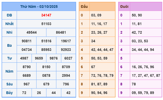 Bảng kết quả xsmb ngày 02/10/2025