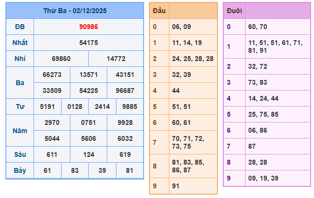 Giải đặc biệt: 90986. Giải nhất: 54175