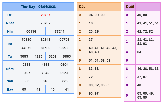 Bảng kết quả xsmb ngày 04/04/2026