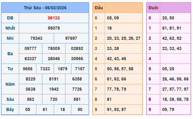 Bảng kết quả xsmb ngày 06/02/2026