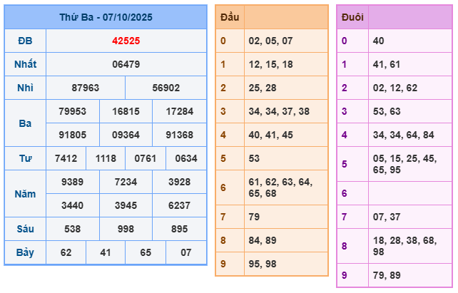Bảng kết quả xsmb ngày 07/10/2025