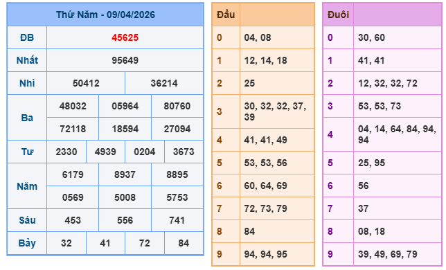 Giải ĐB: 45625