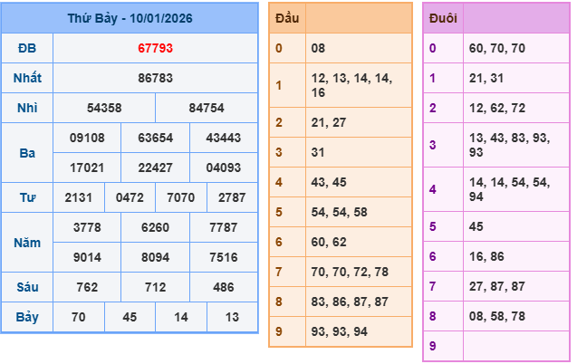 Bảng kết quả xsmb ngày 10/01/2026