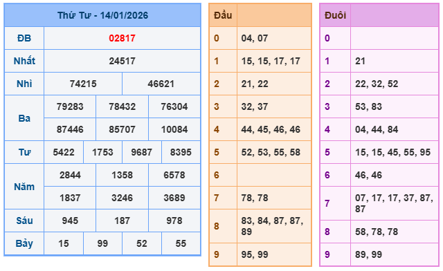 Giải đặc biệt: 02817. Giải nhất: 24517