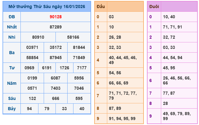 Bảng kết quả xsmb ngày 16/01/2026