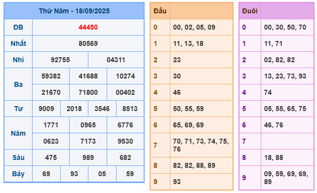 Bảng kết quả xsmb ngày 18/09/2025