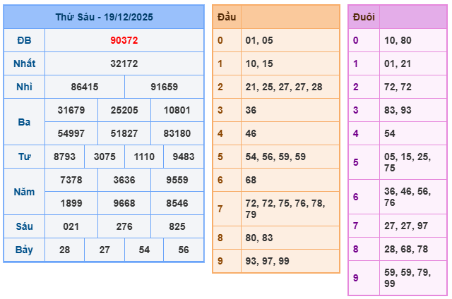 Bảng kết quả xsmb ngày 19/12/2025