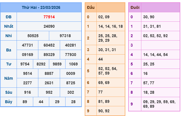 Bảng kết quả xsmb ngày 23/03/2026