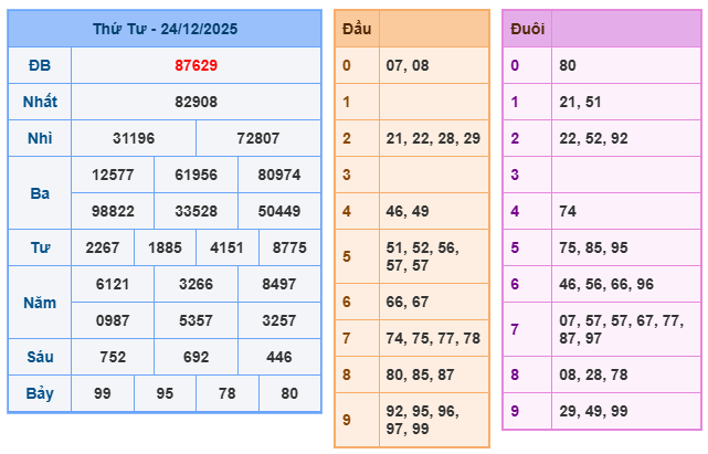 Bảng kết quả xsmb ngày 24/12/2025