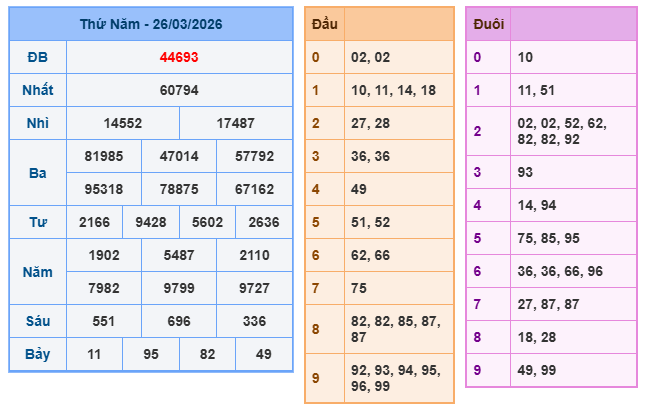 Giải đặc biệt: 44693. Giải nhất: 60794