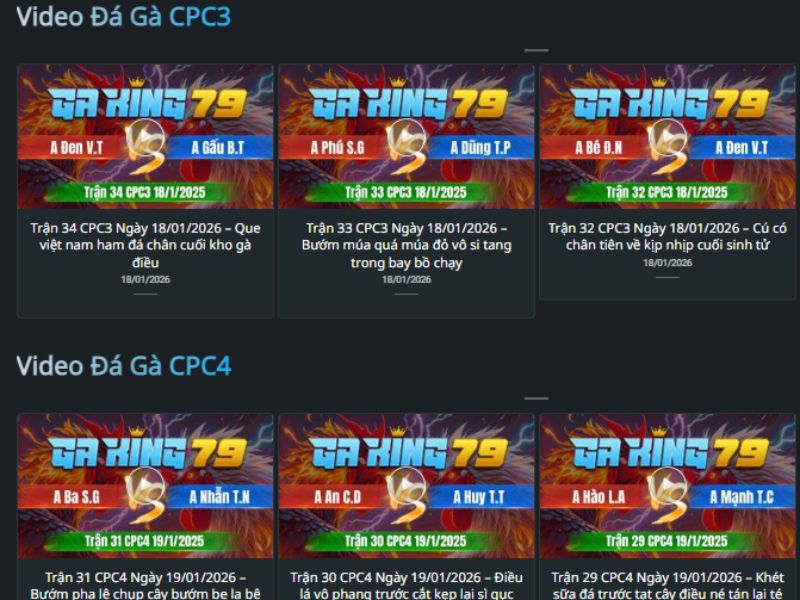 CPC5 là bồ gà chuyên đá cựa sắt, thời gian trận đấu ngắn, kết quả rõ ràng. Đây là lựa chọn yêu thích của nhóm người xem thích nhịp độ nhanh và dứt khoát. Ngoài ra thì nền tảng cũng cung cấp kèo cược CPC5
