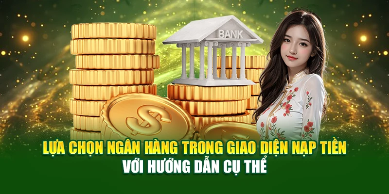 Lựa chọn ngân hàng trong giao diện nạp tiền với hướng dẫn cụ thể